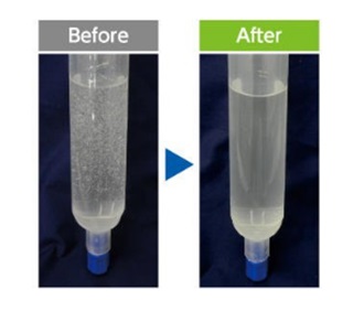 การกำจัดฟองอากาศที่ใช้ระบบสุญญากาศ จะสามารถกำหลังฟองอากาศขนาดเล็กมาก (finer bubble) ซึ่งมักจะกำจัดออกได้ยาก ทำให้เพิ่มประสิทธิภาพในการคงคุณสมบัติทางเคมี และป้องกัน air shorts ที่เกิดจากการที่อากาศถูกฉีดออกแทนที่ของเหลวจากหลอดฉีด (syringe)
